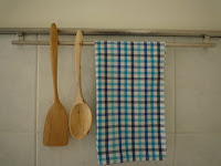 先日友人が遊びに来た時にどさくさにまぎれて買った新しいキッチングッズ。杜松(ねず:ヒノキ科)の木のフライ返しとお玉です(合わせて240クローン。約2400円)。我が家の自慢のキッチンにもぴったりマッチしてくれて良いアクセントになりました。