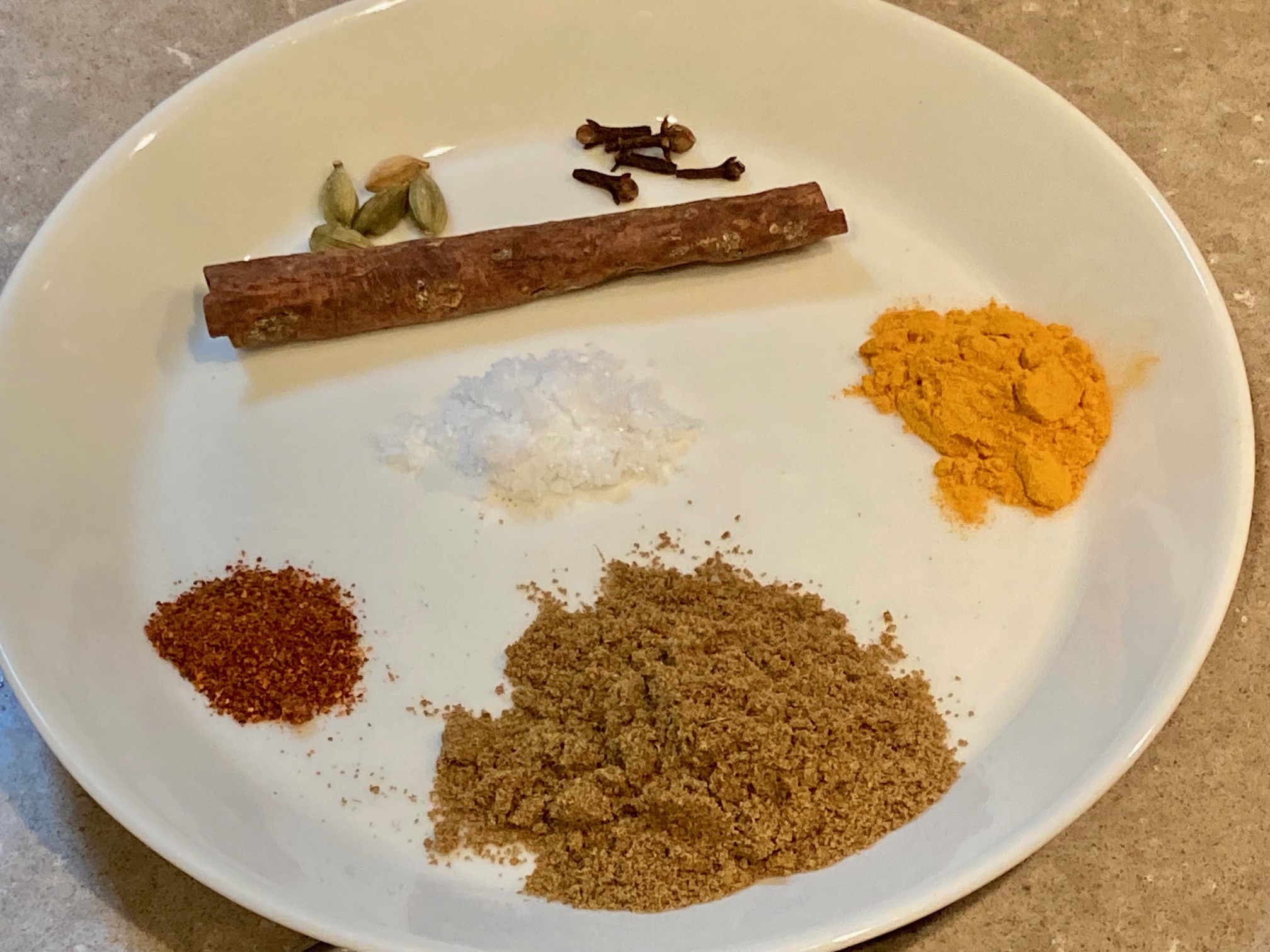 金曜日はカレーの日!本日はスペアリブと舞茸を使ったスパイスカレー。使ったスパイスは、カルダモン、クローブ、シナモン、ターメリック、クミン&チリ。